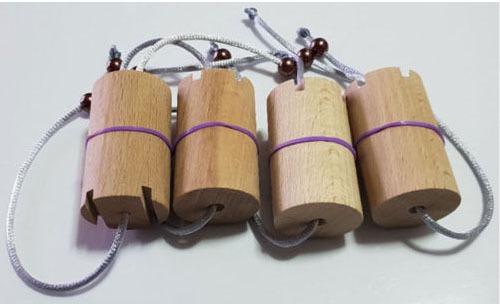 Está elaborado artesanalmente a mano, en madera de haya, su uso es bipolar es decir que tiene dos caras una lisa y otra estriada.
