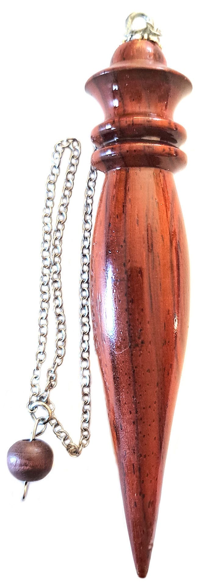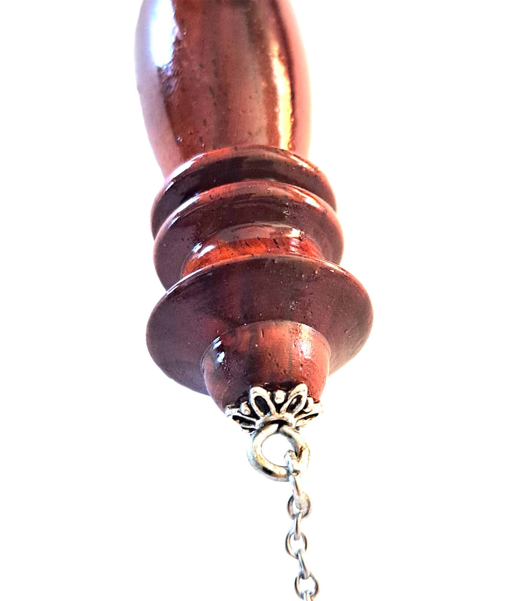 Péndulo fabricado artesanalmente con madera exótica y terminaciones de lujo, perfectamente equilibrado, muy sensible a las energías mas sutiles.