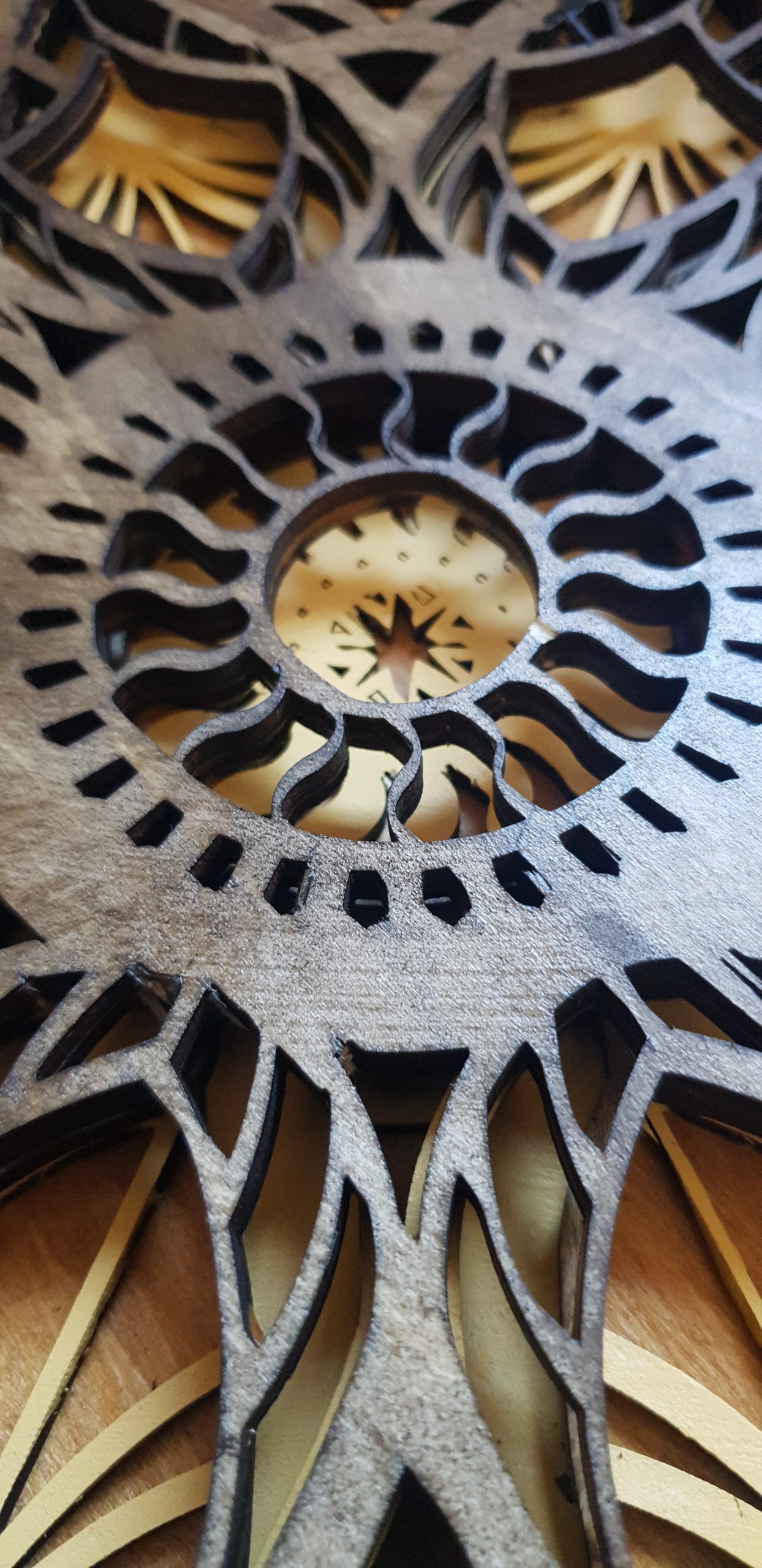 Los mandalas por capas de madera son una forma de arte y diseño que combina dos elementos principales: los mandalas y las capas de madera.