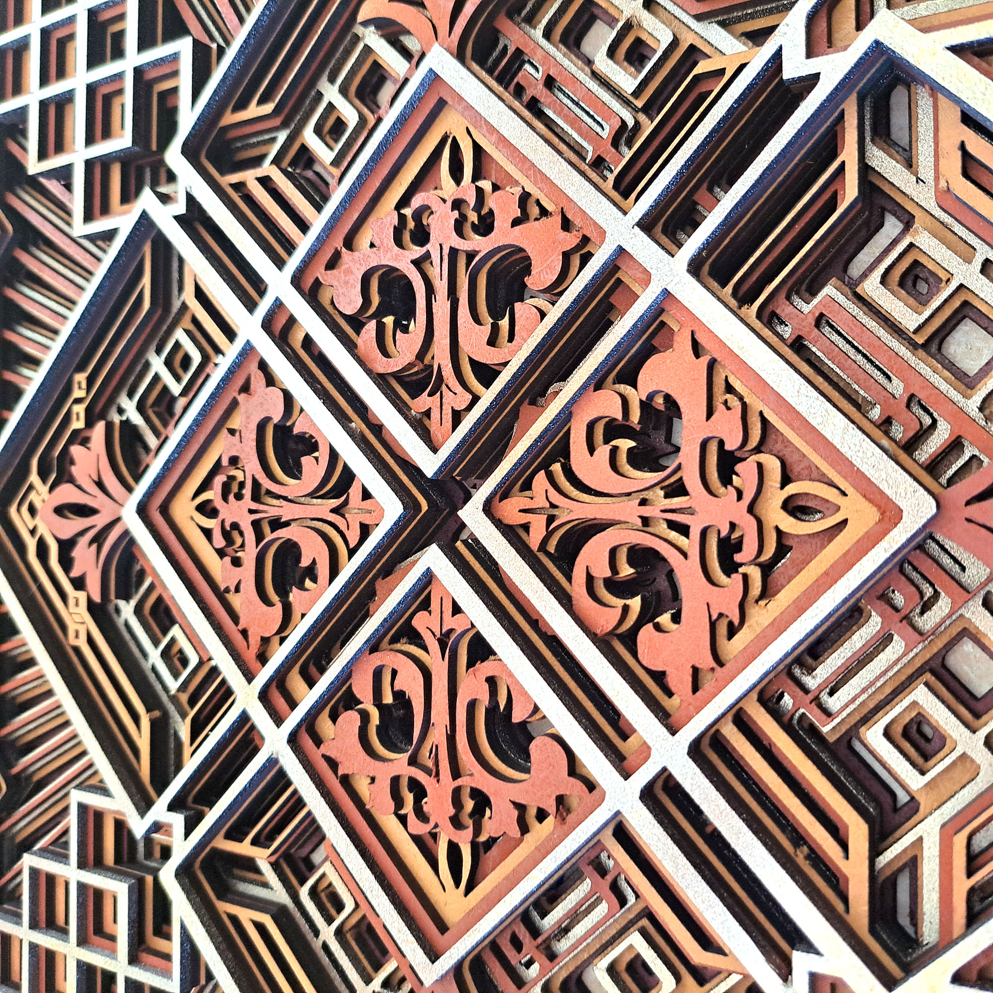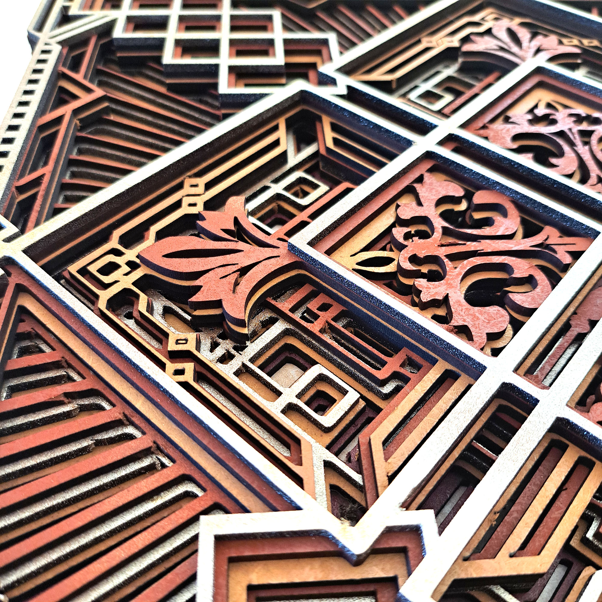 Estas capas están apiladas unas sobre otras para crear diseños en relieve tridimensionales.