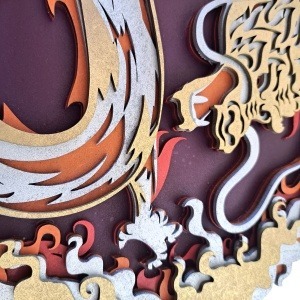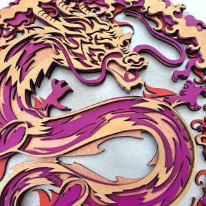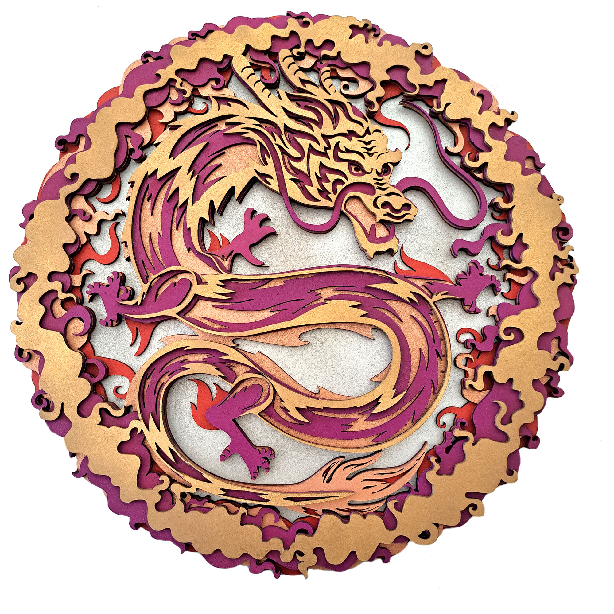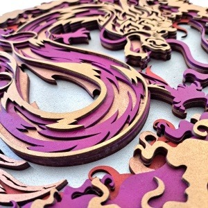 Mándala DRAGÓN multi-capa fabricado en madera artesanal con 5 capas, efecto 3D medidas 39×39 centímetros