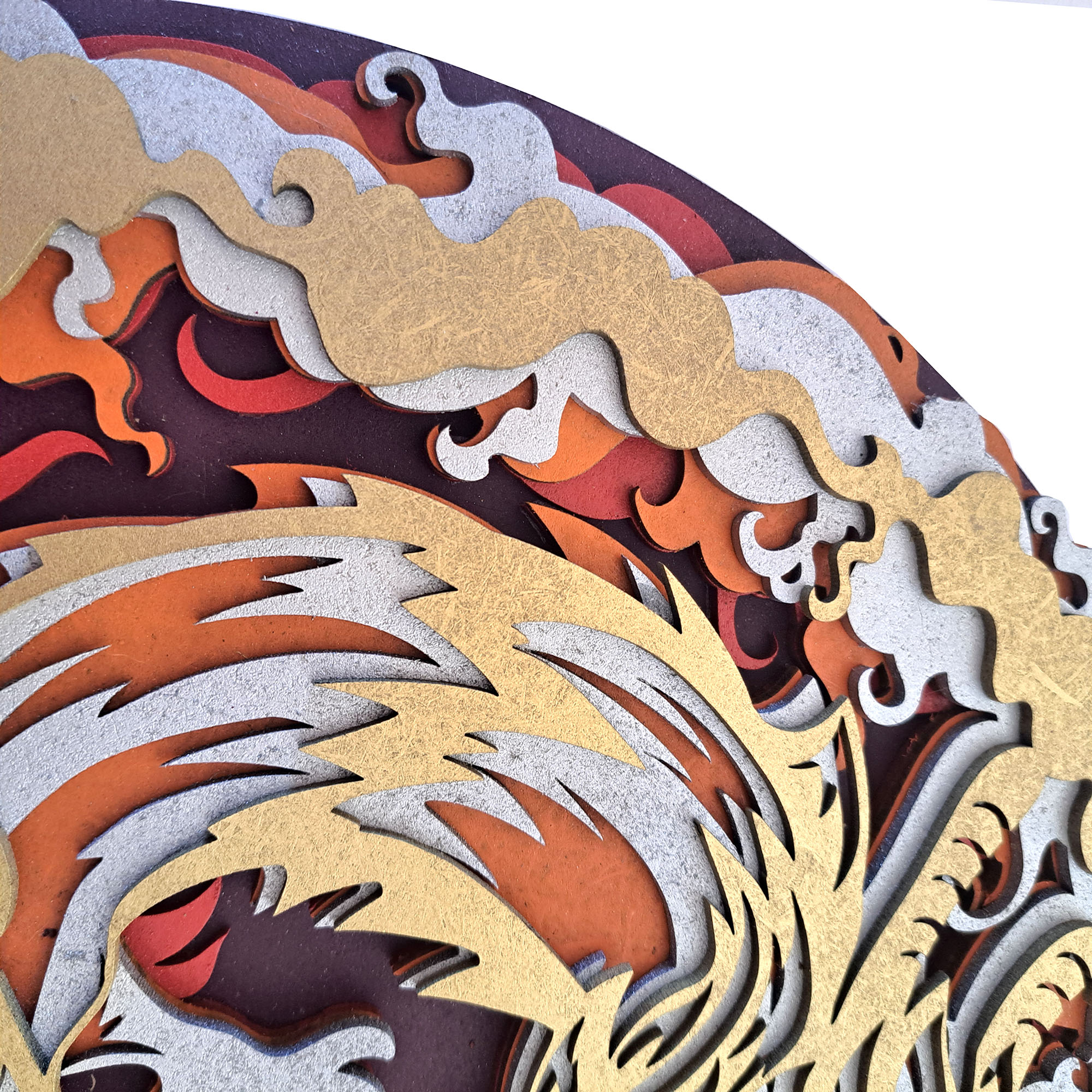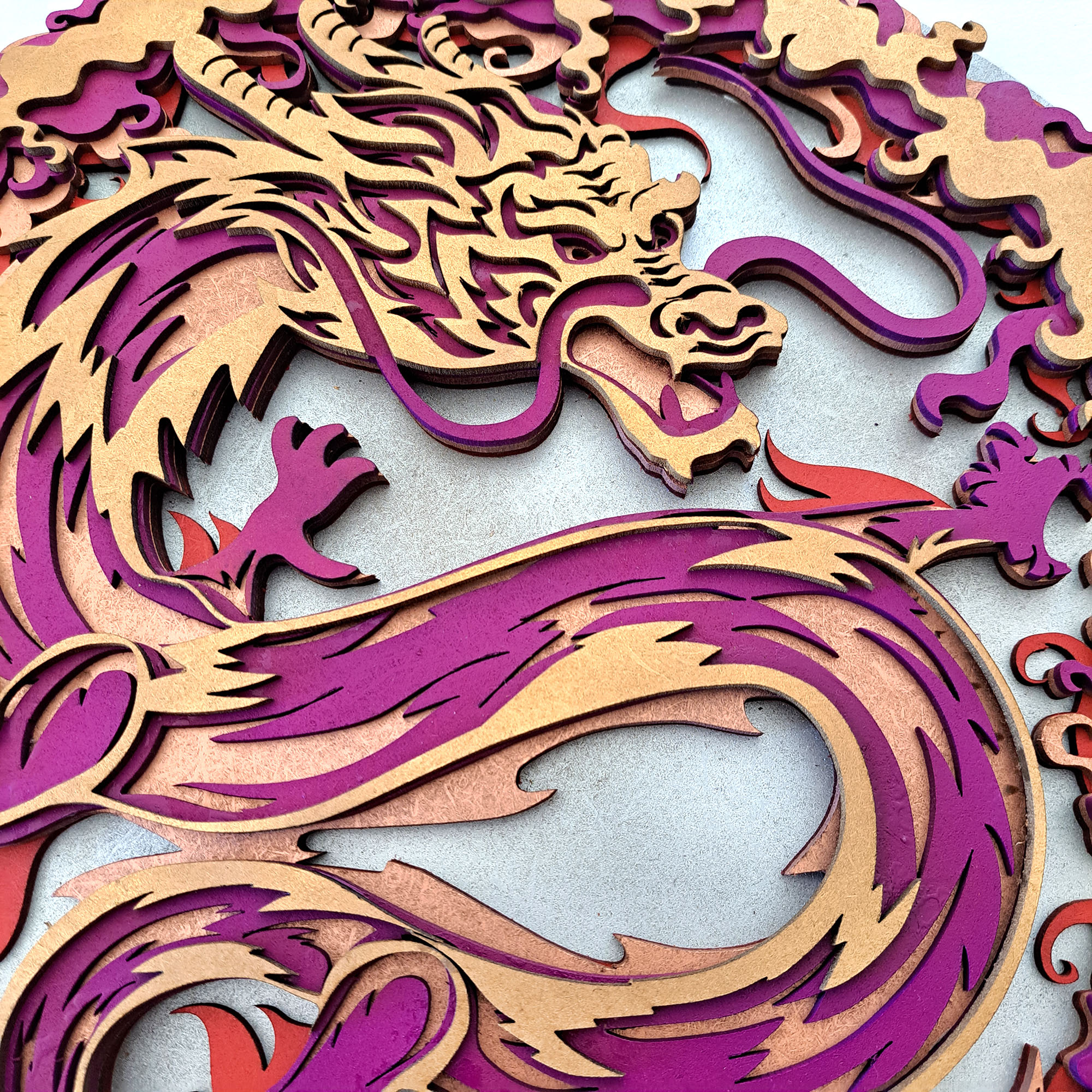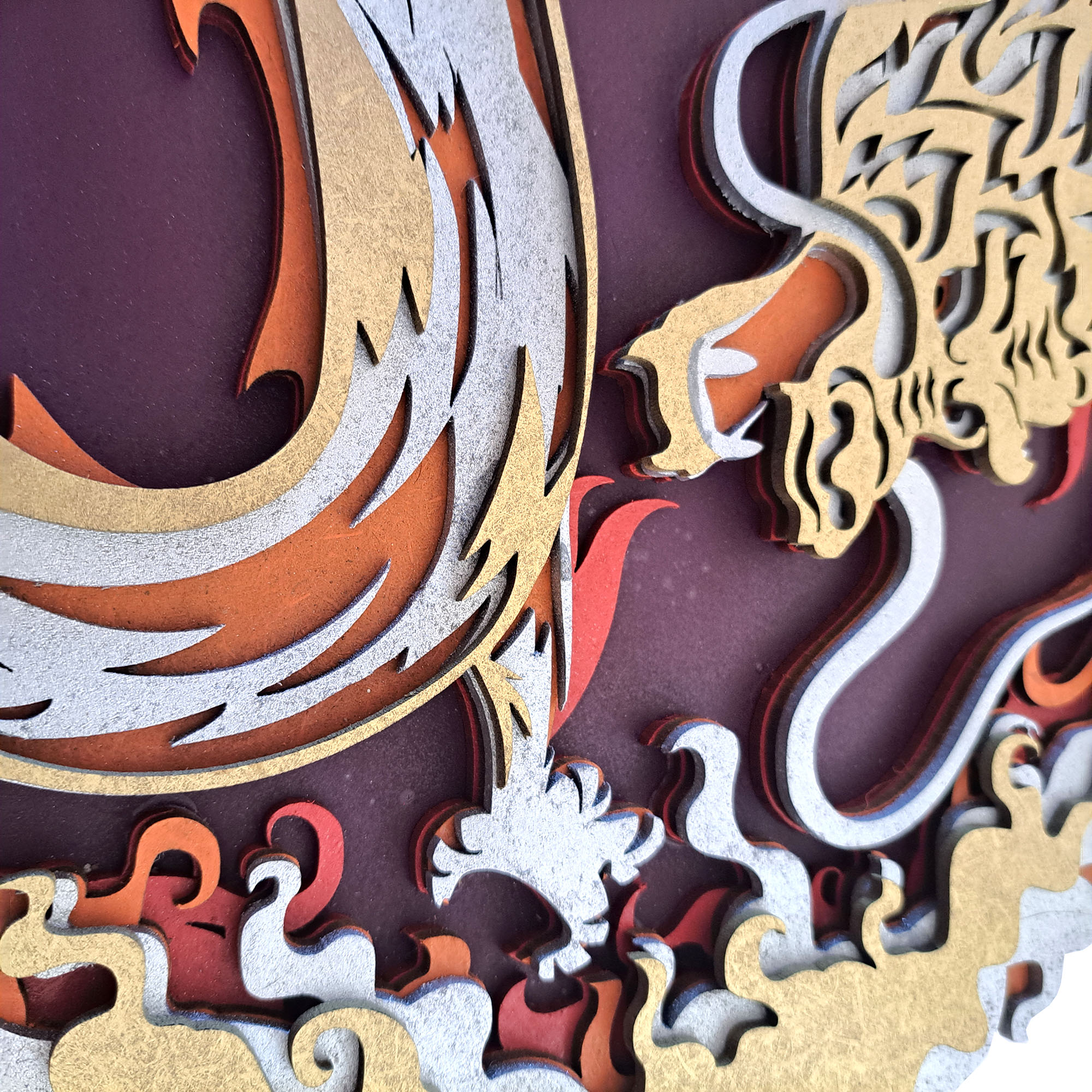 Mándala DRAGÓN multi-capa fabricado en madera artesanal con 15 capas, efecto 3D medidas 39×39 centímetros