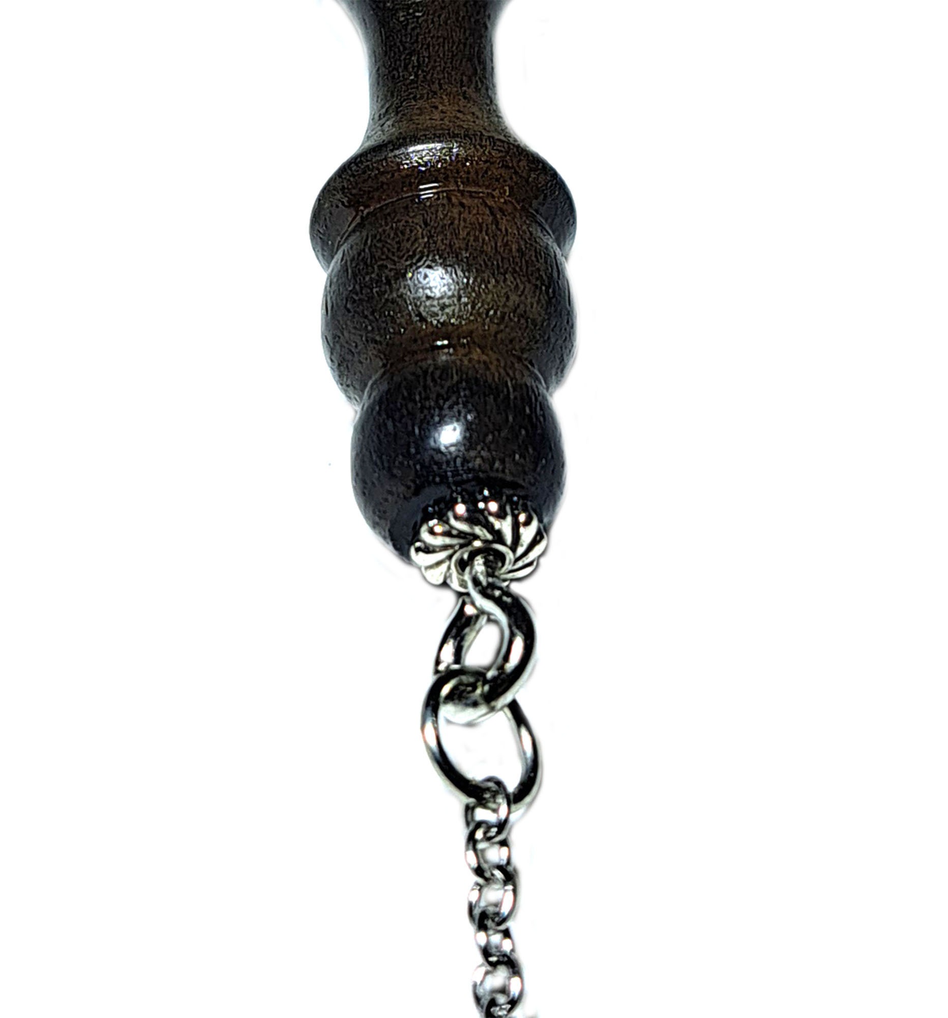 Forma clásica de estos inusuales emisores, los hace péndulos dinámicos perfectamente equilibrados de gran sensibilidad radiestésica a las vibraciones más sutiles. Especialmente útil para probar y medir la dosis de cualquier radiación tanto directamente así como para trabajar en mapas, planos, documentos y con el uso de fotografías y otros testigos de radiestesia. La alta precisión de este equipo permite determinación precisa tanto del tipo como del origen de las perturbaciones por vibración en un cuerpo físico y en cuerpos compuestos de las energías más sutiles, muy útil para determinar los porcentajes de diferentes energías, preciosa madera exótica. Utilizado en parapsicología, adivinación, numerología, cábala, un potente transmisor e incluso generador de energía en reposo. Emisores para intermedios y altamente capacitados y zahoríes iniciados. Utilizado en astrología, alternativa medicina para transferir vibraciones, verificando chakras, auras, centros energía etc.