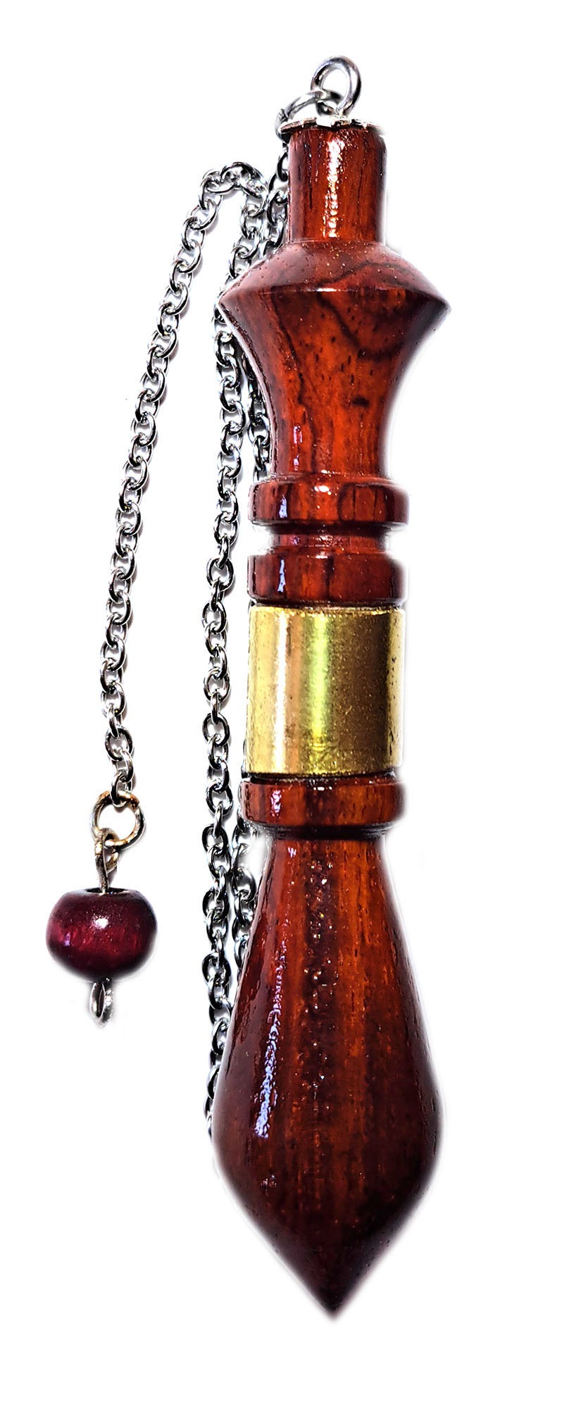 Péndulo de madera exótica perfectamente equilibrado de gran sensibilidad radiestésica a las vibraciones más sutiles. La alta precisión de este péndulo, permite la determinación precisa de las energías más sutiles, Utilizado en Radiestesia, Sanación o Adivinación, Fabricado en madera y metal, para conferirle un acabado de lo más lujoso.