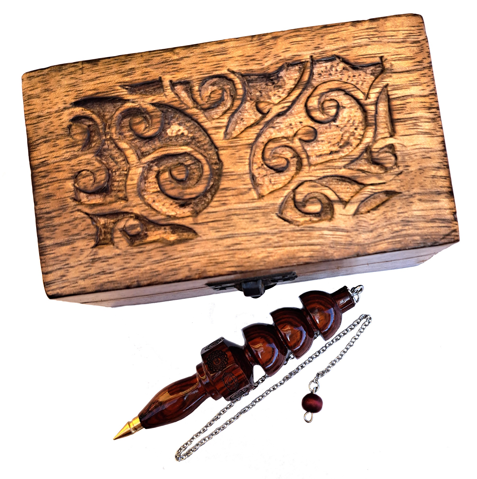- Madera: La elección de la madera como material principal aporta una energía natural y suave. La madera es un material orgánico, conectando el péndulo con la naturaleza y ofreciendo una sensación de calidez y equilibrio.