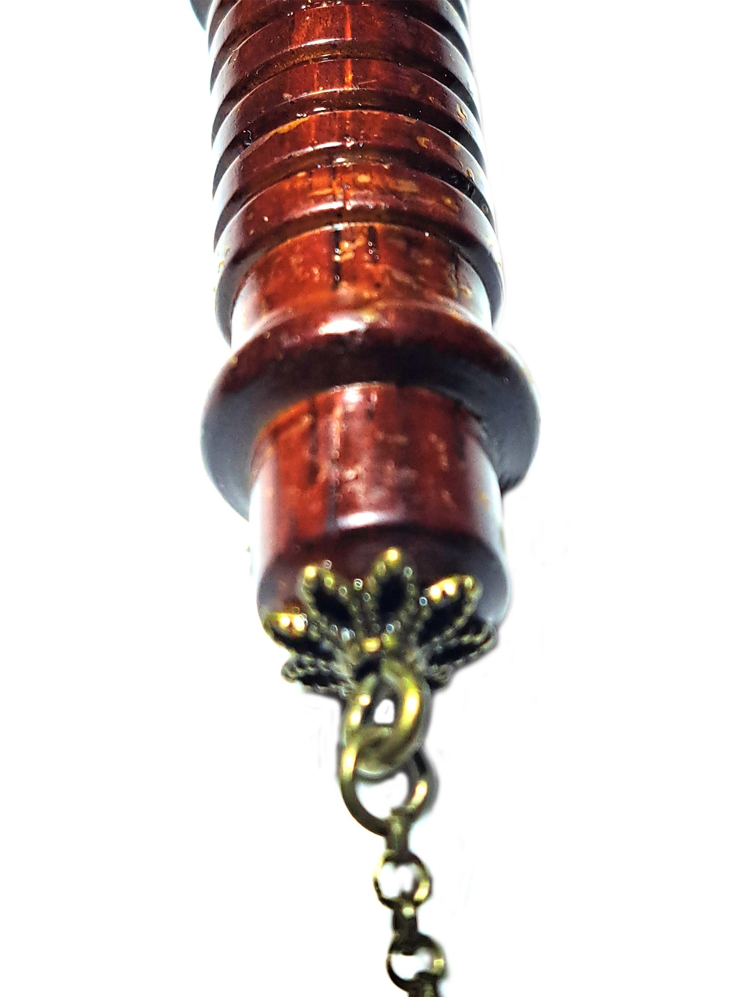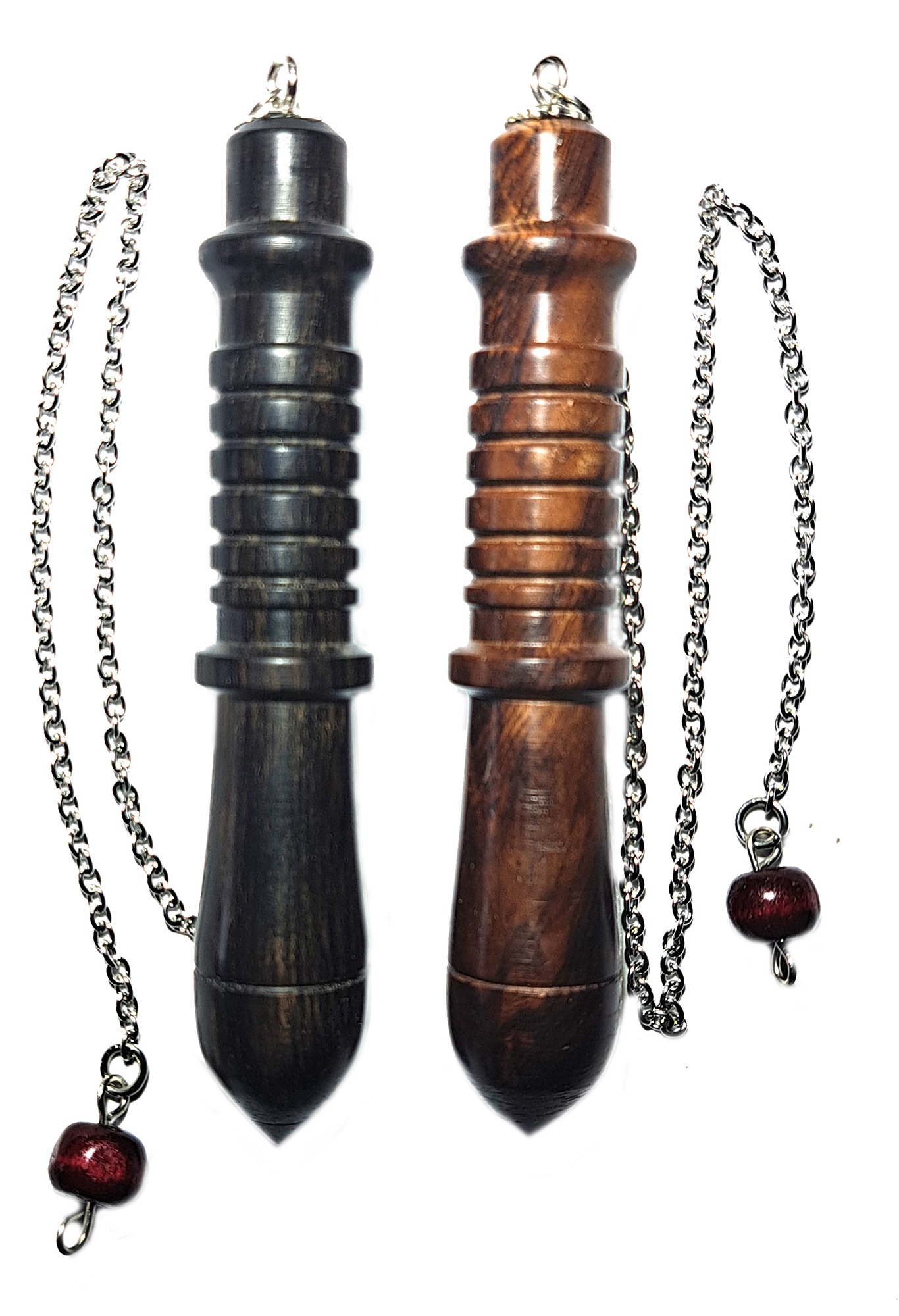 El péndulo Faraón  fabricado en madera, es una variante especial de los péndulos de radiestesia que combina el diseño tradicional y simbólico con las propiedades naturales y únicas de la madera.