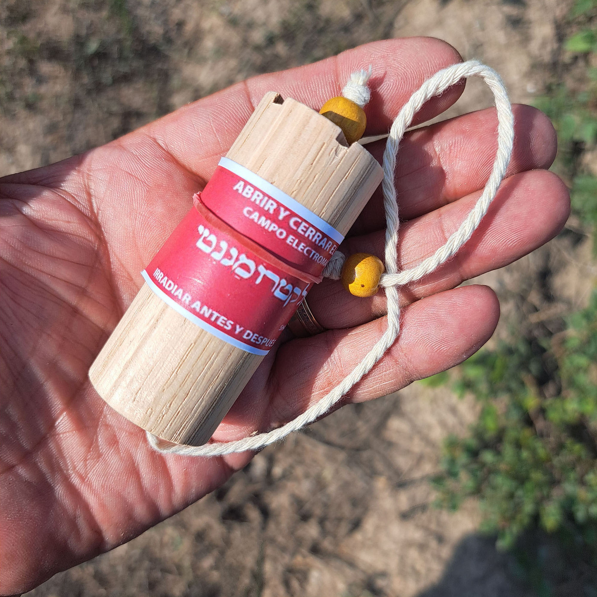 El PENDULO HEBREO nos permite detectar los desequilibrios (enfermedades) antes de que se manifiesten en el cuerpo físico., permite hacer una limpieza del aura profunda a un nivel celular y armoniza las alteraciones a nivel físico, emocional y mental que podamos tener. Se tratan Magias, Miasmas. || Péndulo hebreo fabricado en madera de ROBLE de modo artesanal, está perfectamente equilibrado, las ranuras de 3×3 mm de profundidad para conseguir la perfecta irradiación del mensaje de la etiqueta hebrea. Cuerda blanca de algodón y bolitas de madera, todo natural para que no interfieran en las irradiaciones y en la detección de las energías más sutiles. Para protocolos de sanación, limpiezas y detección de Magias, Miasmas etc