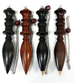 Forma clásica de estos inusuales emisores, los hace péndulos dinámicos perfectamente equilibrados de gran sensibilidad radiestésica a las vibraciones más sutiles. Especialmente útil para probar y medir la dosis de cualquier radiación tanto directamente así como para trabajar en mapas, planos, documentos y con el uso de fotografías y otros testigos de radiestesia. La alta precisión de este equipo permite determinación precisa tanto del tipo como del origen de las perturbaciones por vibración en un cuerpo físico y en cuerpos compuestos de las energías más sutiles, muy útil para determinar los porcentajes de diferentes energías, preciosa madera exótica. Utilizado en parapsicología, adivinación, numerología, cábala, un potente transmisor e incluso generador de energía en reposo. Emisores para intermedios y altamente capacitados y zahoríes iniciados. Utilizado en astrología, alternativa medicina para transferir vibraciones, verificando chakras, auras, centros energía etc.