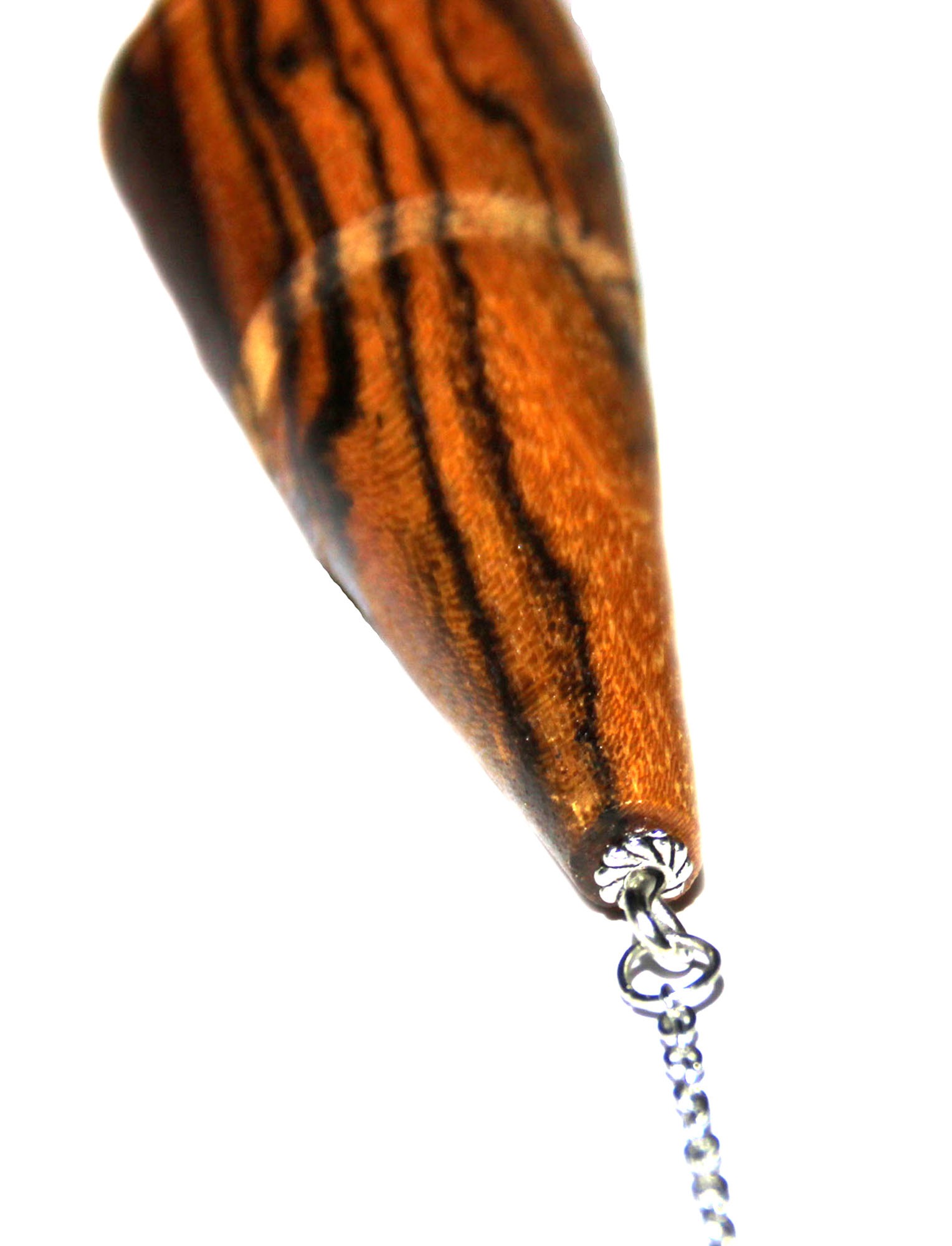 - Material Natural: Los péndulos de madera son populares por su conexión con la naturaleza y su capacidad para absorber y canalizar energías. Cuando se utiliza madera exótica, como la caoba, el ébano o el palo santo, se añaden cualidades únicas a cada péndulo, ya que estas maderas poseen propiedades energéticas particulares. En la tradición esotérica, la madera se considera un material vivo que interactúa armoniosamente con el entorno.