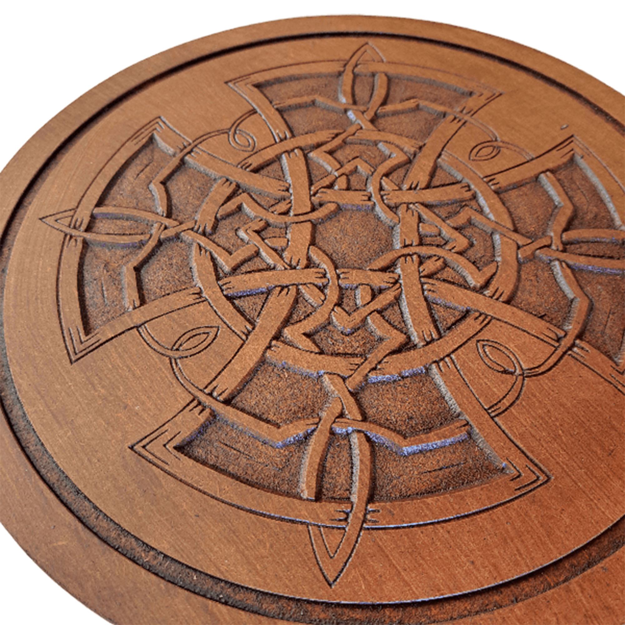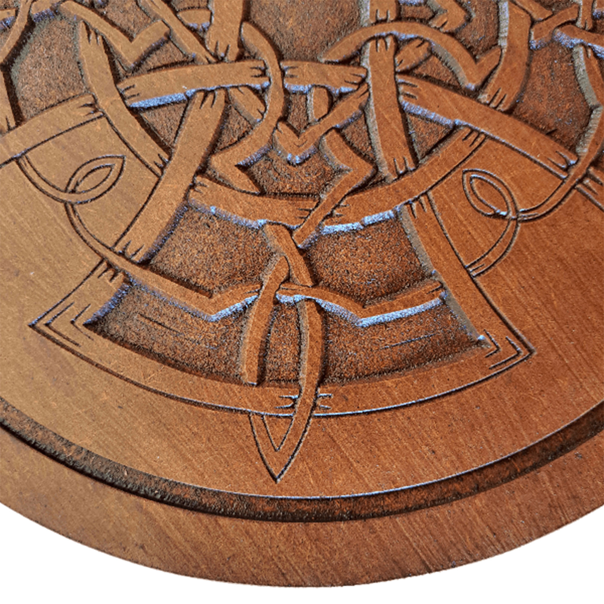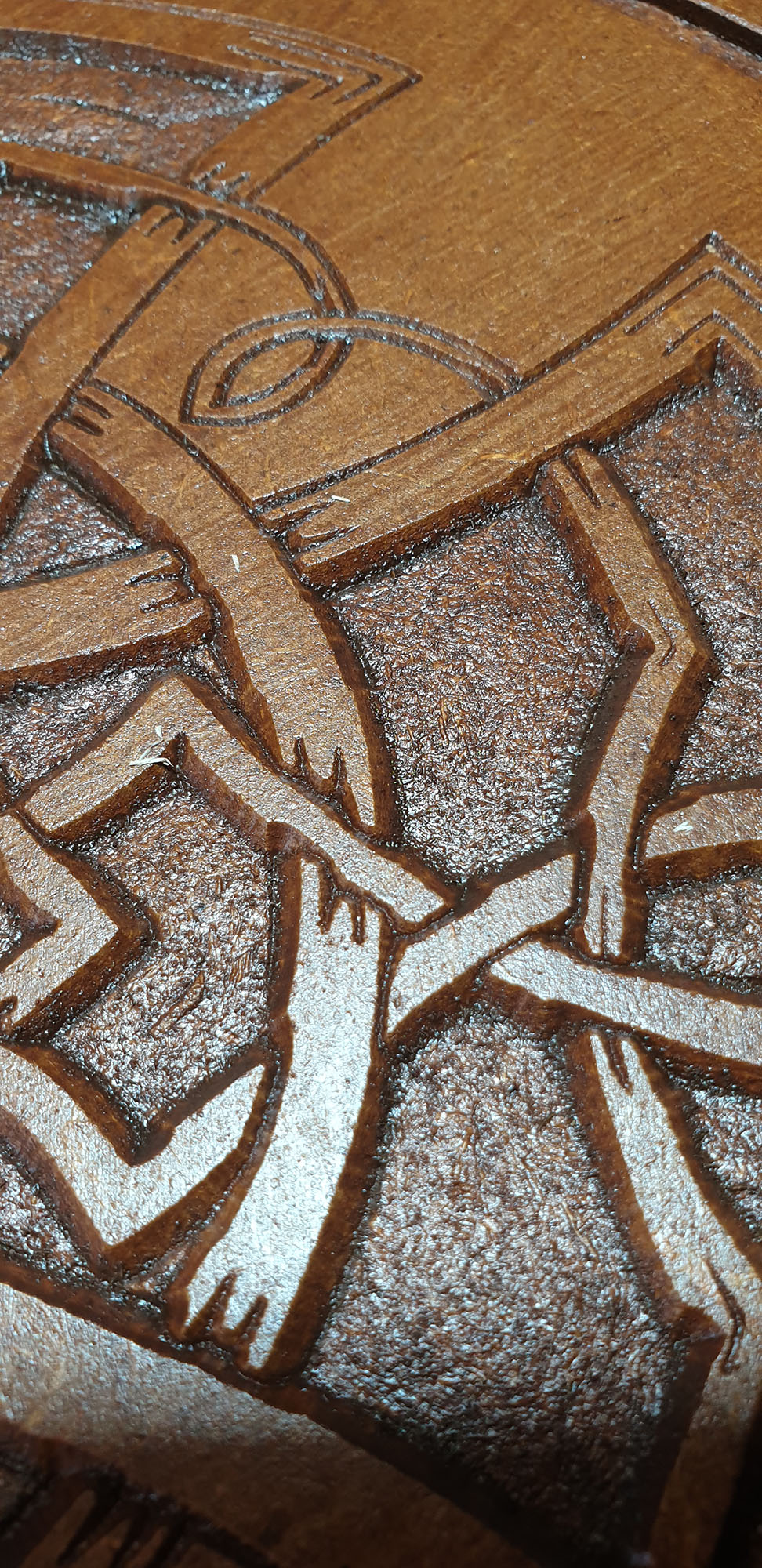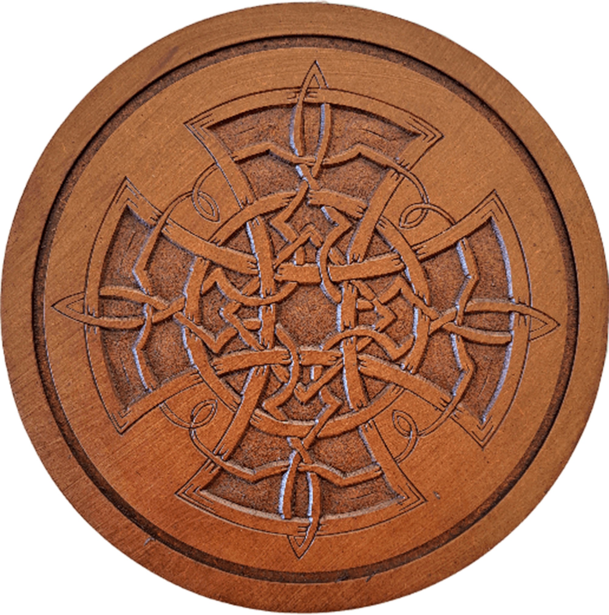 Símbolo CRUZ CELTA tallado en madera de forma artesanal, diámetro de 30 centímetros y pintado a mano.(Cod.7)