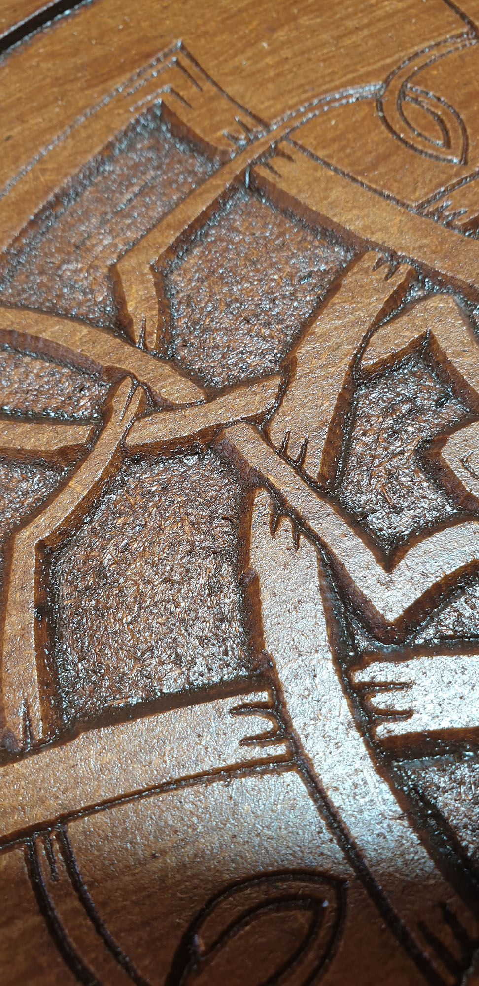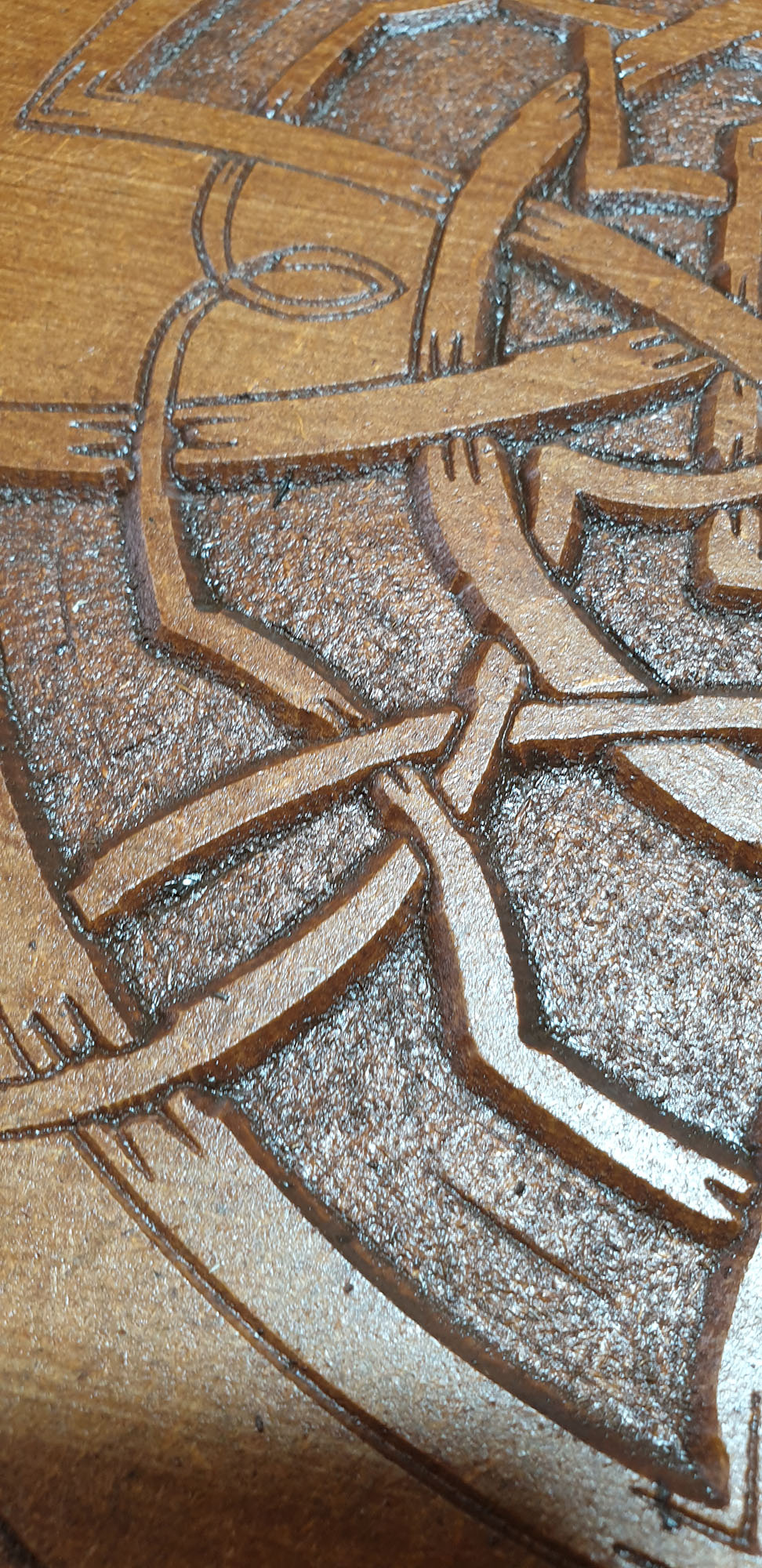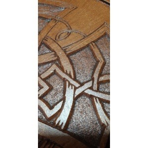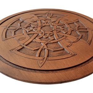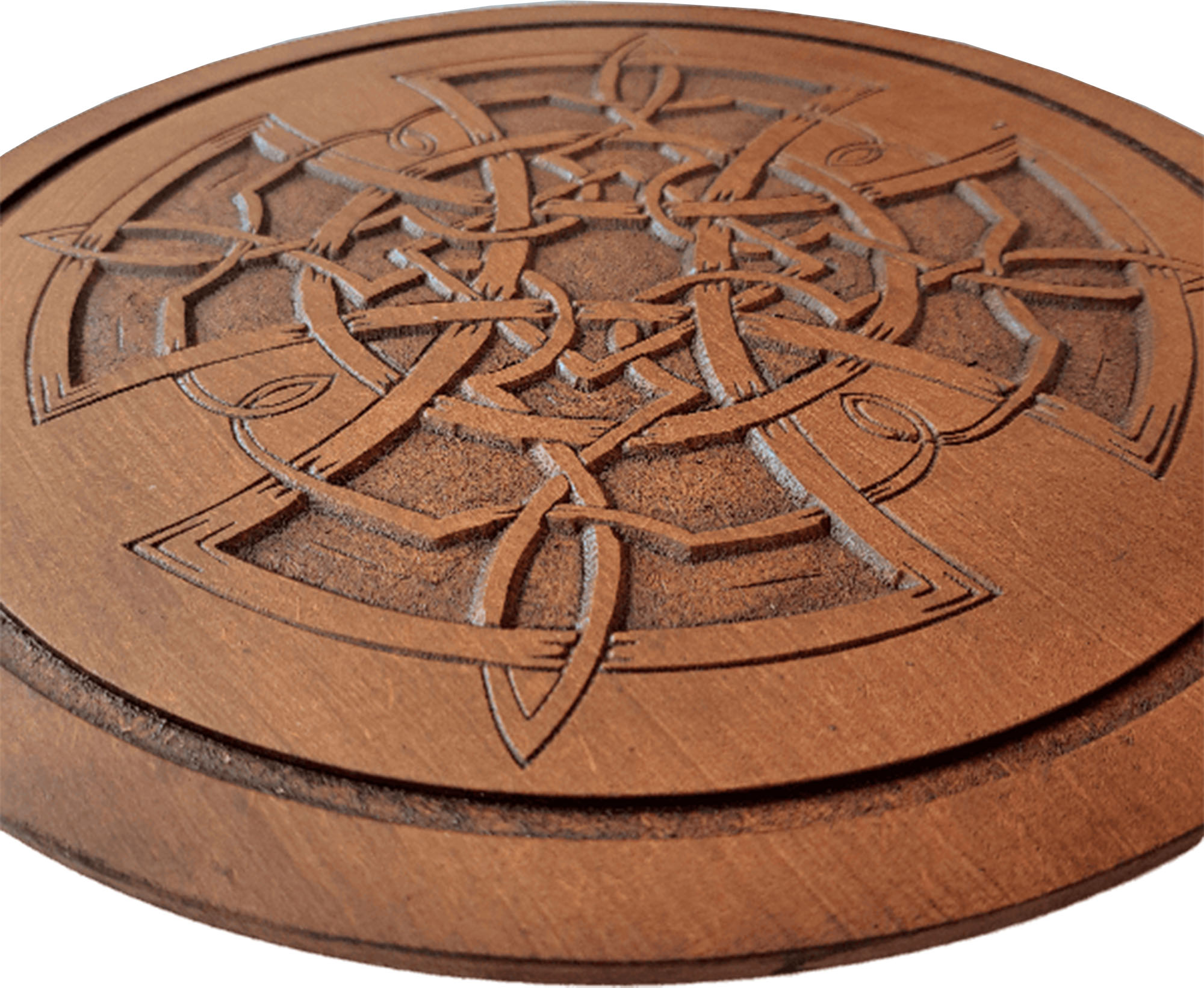Símbolo CRUZ CELTA tallado en madera de forma artesanal, diámetro de 30 centímetros y pintado a mano.(Cod.7)