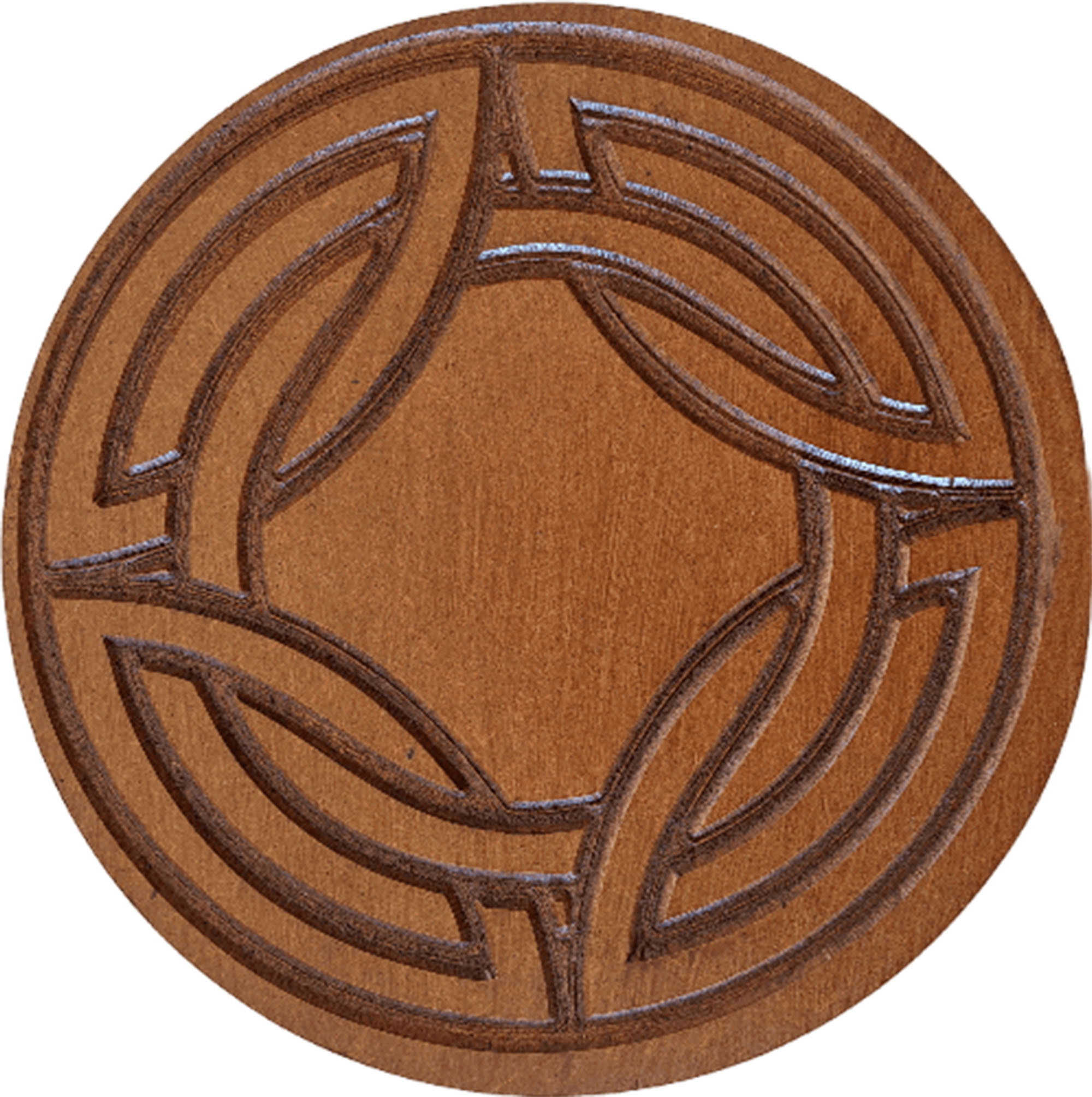 Símbolo vikingo tallado en madera de forma artesanal, diámetro de 30 centímetros y pintado a mano.(Cod.8)